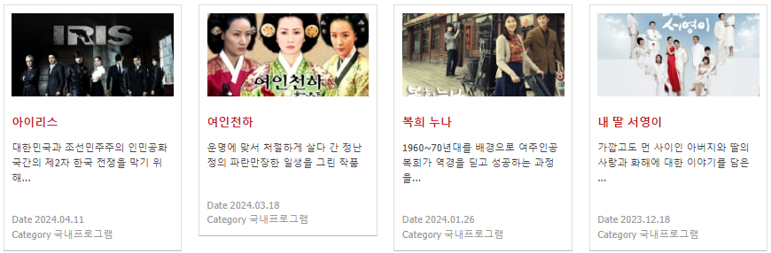- 선택한 날짜의 편성 프로그램을 확인할 수 있습니다.