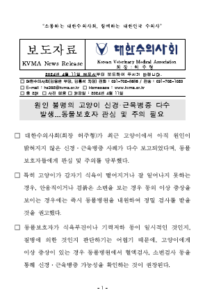- 현재 상황: 정확한 사인 조사 진행 중, 해당 사료 시중 수거